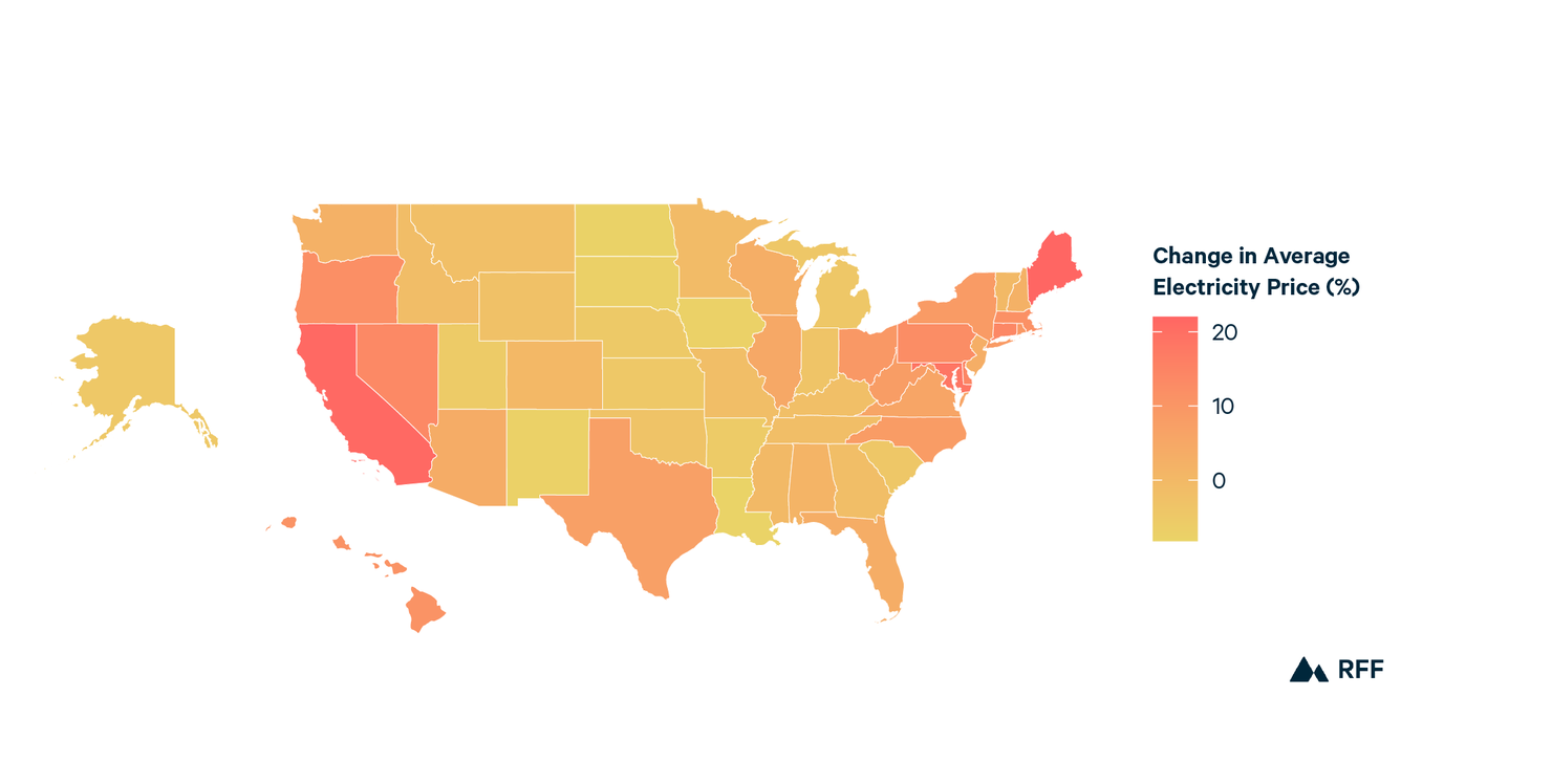 Chart 2: Percent Change in Inflation-Adjusted Electricity Prices, 2021–2024